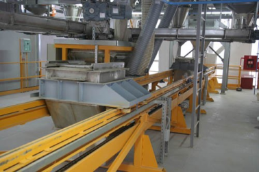 - Компоновка оборудования участка дозирования смешивания выполнена по вертикальной схеме. Классическая вертикальная схема дополнена эксклюзивной горизонтальной транспортной системой «SHUTTLE BOX» - два транспортных бункера, двигаясь по горизонтальным направляющим, доставляют композицию отдозированных средних и микрокомпонентов в бункер, расположенный над главным смесителем. Транспортная система «SHUTTLE BOX» позволяет: