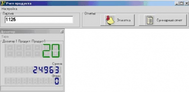 Во время работы программы на экране ПК отображаются значения текущего веса и текущее значение счетчиков. ПО ведет статистику отвесов и позволяет создавать отчеты на базе накопленных данных.